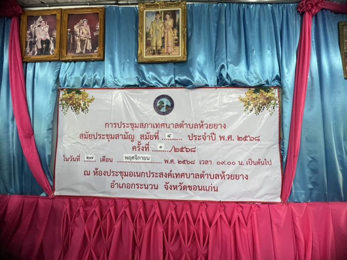 ประชุมสภาเทศบาลตำบลห้วยยาง สมัยประชุมสามัญ สมัยที่ ๔ ประจำปี พ.ศ. ๒๕๖๘ ครั้งที่ ๑/๒๕๖๘ วันที่ ๒๗ พฤศจิกายน ๒๕๖๘ ณ ห้องประชุมอเนกประสงค์เทศบาลตำบลห้วยยาง อำเภอกระนวน จังหวัดขอนแก่น